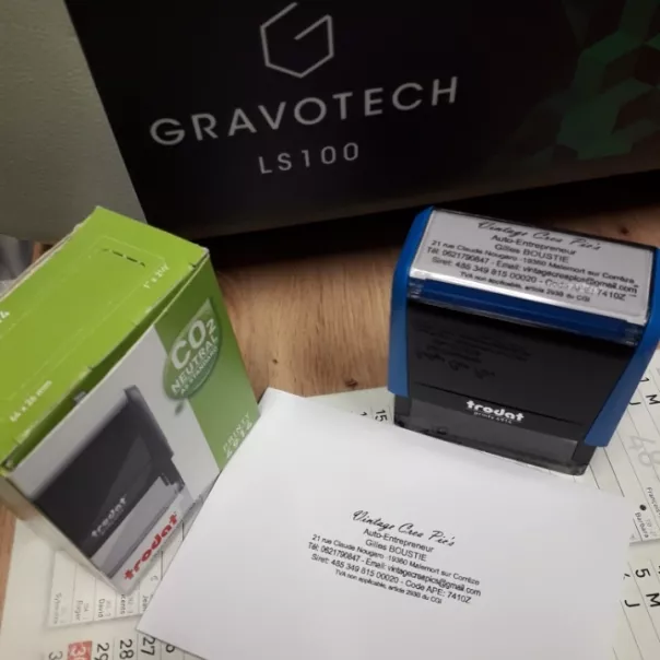 - Pour les tampons, nous fabriquons des tampons personnalisés pour un usage professionnel ou personnel, avec possibilité d'intégrer du texte et des logos.