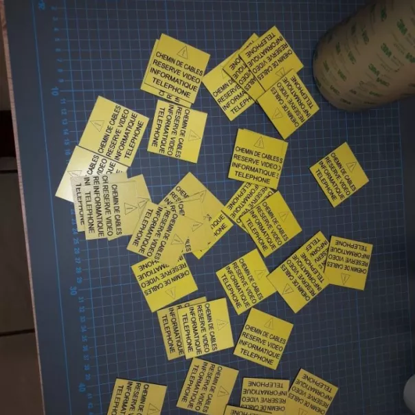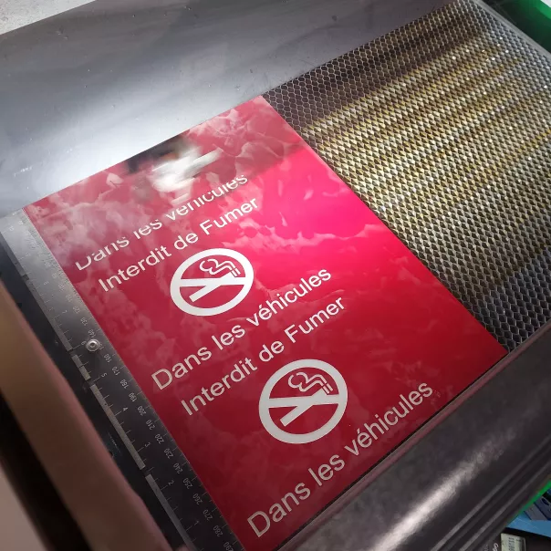 - Pour la gravure, nous réalisons des plaques professionnelles, plaques de boîtes aux lettres, médailles pour animaux et plaques signalétiques.
